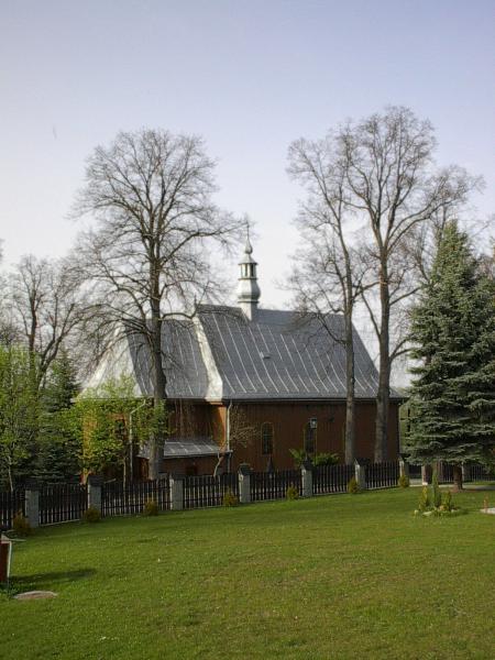 Na szczególną uwagę zasługuje zabytkowy kościół pw. Św. Wojciecha z XVII w. ufundowany przez Jana Wielopolskiego – kasztelana wojnickiego. Jest on konstrukcji drewnianej, zrębowej, szalowany, jednonawowy z węższym trójbocznym prezbiterium. Nie posiada wieży, a tylko sygnaturkę. Wnętrze kościoła zdobią fragmenty polichromii późnorenesansowej z 1688 roku, obrazy świętych z XVIII w., barokowy ołtarz główny i chrzcielnica kamienna z drewnianą pokrywą i rzeźbą Św. Jana Chrzciciela, konfesjonał z 2 połowy XVIII w. z malowidłami figuralnymi. W ołtarzu bocznym przechowywany jest łaskami słynący złocony obraz Matki Bożej Bolesnej, niegdyś podobno wiszący w kaplicy zamkowej Zawiszy Czarnego. Ciekawostkę stanowi prezbiterium z malowidłami hrabiny Bogumiły Stadnickiej i grupa posągów barokowych, tworzących przejmującą scenę ukrzyżowania.