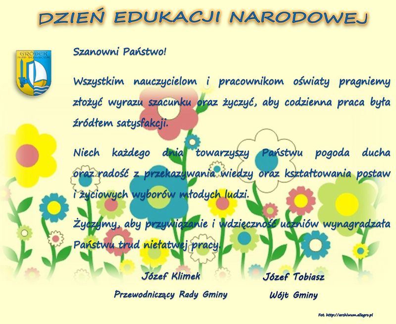 Wszystkim nauczycielom oraz pracownikom oświaty pragniemy złożyć wyrazy szacunku oraz życzyć, aby codzienna praca była źródłem osobistej satysfakcji...