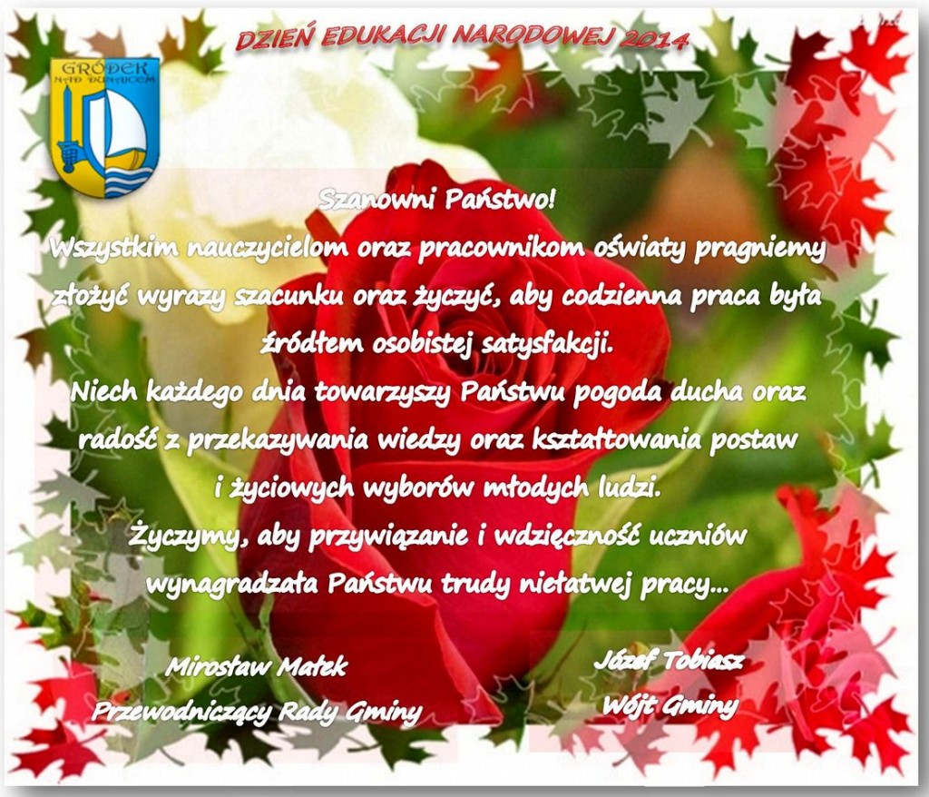 Wszystkim nauczycielom oraz pracownikom oświaty pragniemy złożyć wyrazy szacunku oraz życzyć, aby codzienna praca była źródłem osobistej satysfakcji...