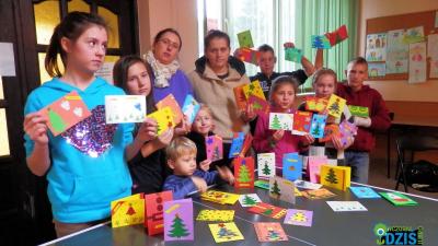 Efekt 4-godzinnych zajęć jest imponujący – udało się zrobić ok. 50 kartek świątecznych. Kartki są bardzo oryginalne - przeciwieństwo kartek komercyjnych. Co w nich takiego niezwykłego? Każdy z uczestników warsztatów dołożył do każdej kartki co bardzo cennego… swój zapał i serce. Ma to szczególne znaczenie w kontekście celu na jaki kartki zostaną przeznaczone - trafią prosto do dzieci z Madagaskaru, dzięki pracy wolontariuszki misyjnej z Tropia – Olgi Figiel.