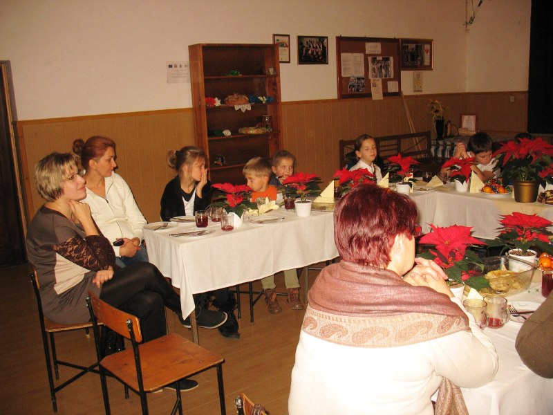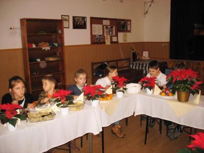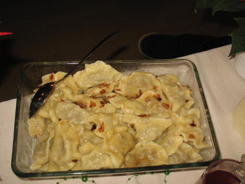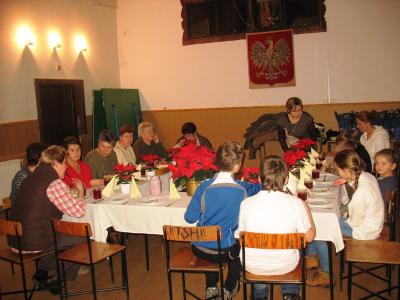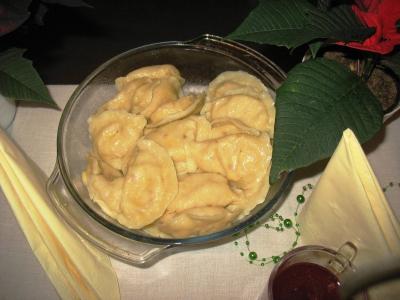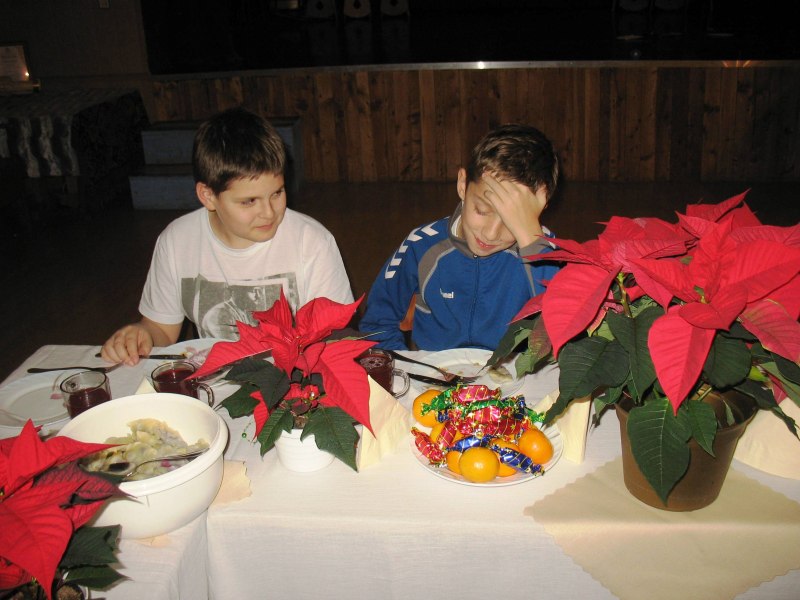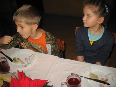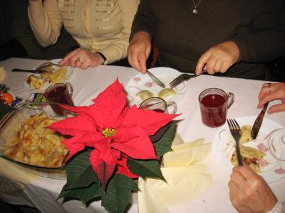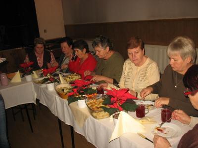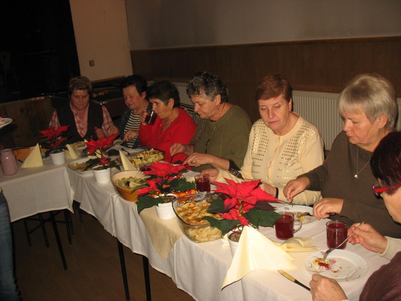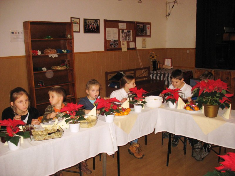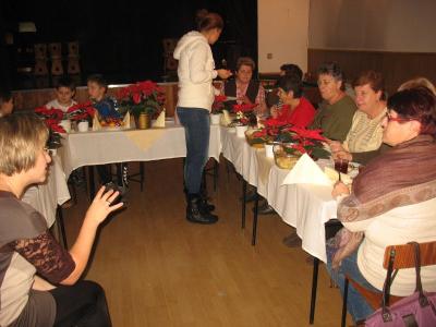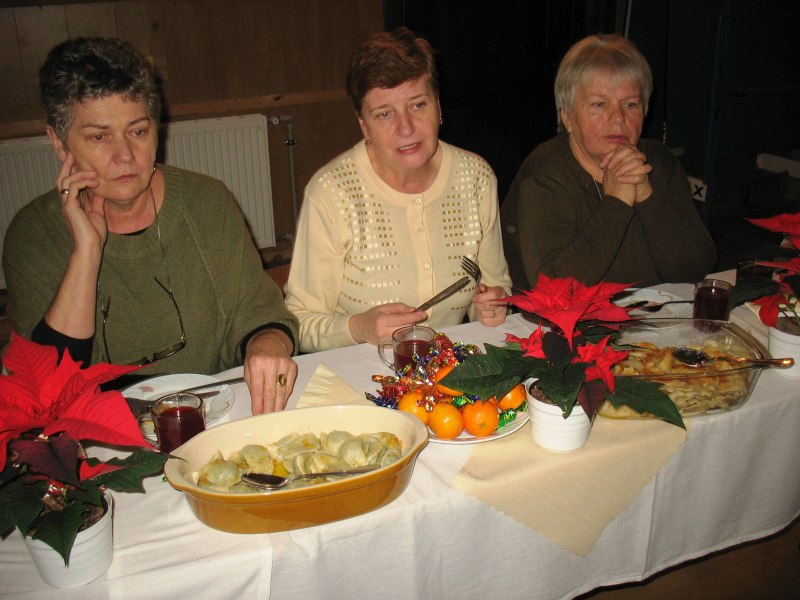 Wystarczyło dla wszystkich, a tym razem było nas znacznie więcej niż zazwyczaj. Warsztaty uświetnił wspaniały zespół „Małe Rożnowioki”, przedstawiając obrzędy andrzejkowe oraz tańce naszego regionu. Było wesoło i naprawdę słodko. Kolejne, a zarazem ostatnie spotkanie upłynęło w atmosferze wielkiego ucztowania, w sam raz przed nadchodzącym adwentem, czyli czasem oczekiwania na Boże Narodzenie na co wskazywała przepiękna sceneria udekorowanych stołów w barwne „gwiazdy betlejemskie”. Na stołach królowały „Pierogi”, które podczas pierwszego spotkania – stały się najpopularniejszą potrawą wybraną przez uczestników – szczególnie tych najmłodszych. Uczestnicy do ich wykonania wykorzystali wszystkie gatunki ciast: kruche, francuskie, kluskowe, drożdżowe, twarogowe i ziemniaczane. Pierogi gotowano, smażono, pieczono… oczywiście nie mogło zabraknąć tych na parze – pychotka..…Do nadziewania użyto wiele różnych produktów między innymi mięso, kapustę, grzyby, szpinak, pospolity biały ser oraz rozmaite owoce jak borówki, truskawki, jabłka i suszone śliwy. Wszystkie przygotowane pierogi zostały smacznie okraszone odpowiednio: te na słodko kremową śmietanką, inne skwarkami, masłem, cebulą i podane z aromatycznym i wyrazistym barszczem czerwonym - oj, to naprawdę była wielka uczta.