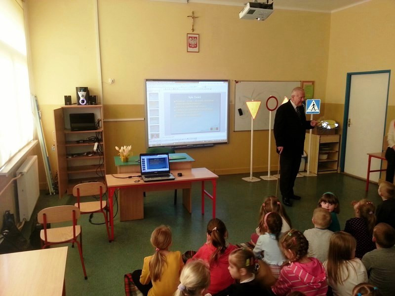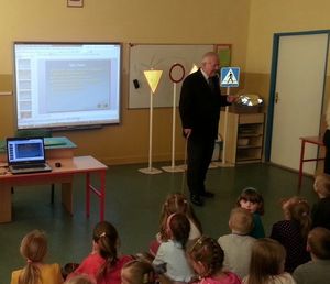 Egzaminator Małopolskiego Ośrodka Ruchu Drogowego w Nowym Sączu- mgr Tadeusz Węgrzyn przybył do szkoły w Przydonicy i oczarował dzieci, które z zapartym tchem słuchały wykładu na temat elementarnych zasad bezpieczeństwa na drodze i konieczności noszenia odblaskowych elementów. Uczniowie oddziału przedszkolnego i klas I-III SP mieli także okazję nauczyć się interpretacji podstawowych znaków drogowych. Na zakończenie zajęć dzieci otrzymały odblaskowe zawieszki, smycze, worki i czapki. Odblaskowe breloczki w mgnieniu oka znalazły swoje miejsca na dziecięcych plecakach.