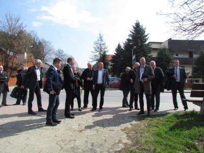 Kolejnym punktem spotkania był objazd terenów objętych planowanymi pracami projektowymi. Wizyta w terenie była swoistym zderzeniem planów oraz wizji z rzeczywistością… Nikt nie miał wątpliwości... Otoczenie Jeziora Rożnowskiego potrzebują dużych nakładów inwestycyjnych! Te inwestycje już są realizowane przez podmioty prywatne dlatego spotkanie zakończyła wizyta w „Słonecznym Gródku” oraz w budowanym przez Pana Andrzeja Wiśniowskiego hotelu w Siennej. Wizyta w tych miejscach miała przekonać przedstawicieli MARR S.A., który jako realizator projektu ma zapewnić również niezbędny finansowy wkład własny, że warto zainwestować w Jezioro Rożnowskie…