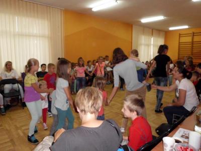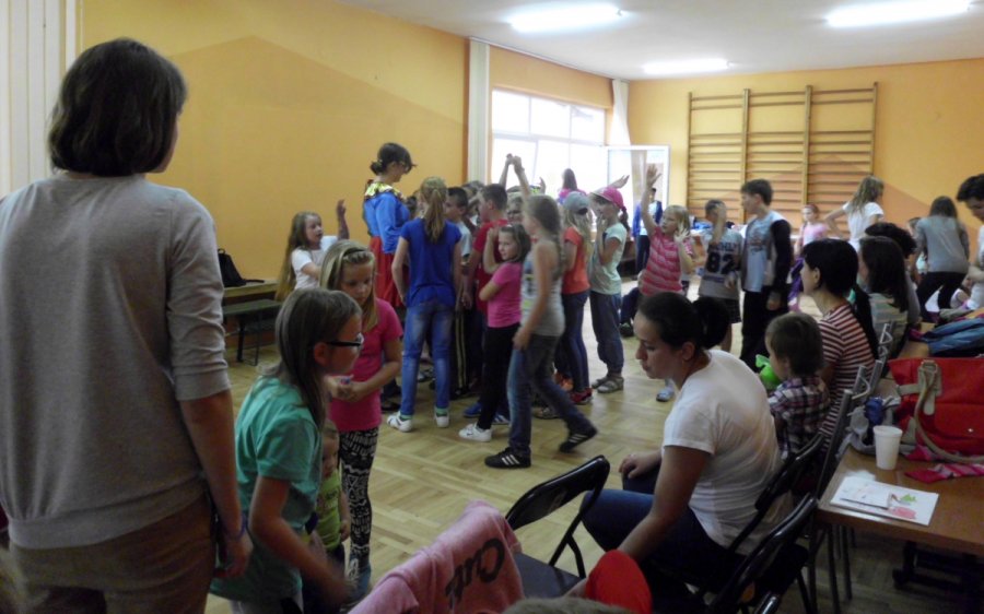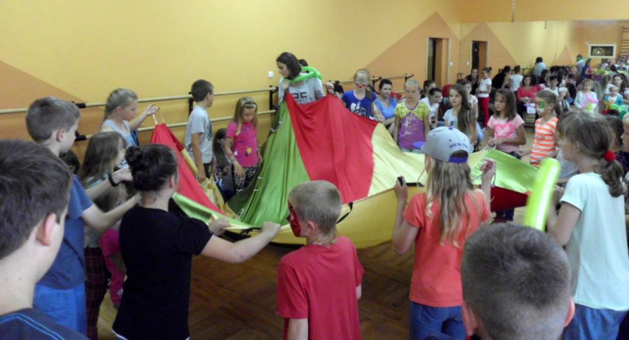 Ponad 80 dzieci uczestniczyło w piątkowych zajęciach, zorganizowanych przez Gminną Bibliotekę Publiczną w Gródku n/Dunajcem w ramach Letniej Strefy Kultury. Ze względu na padający deszcz zabawy zostały przeniesione do sali choreograficznej.