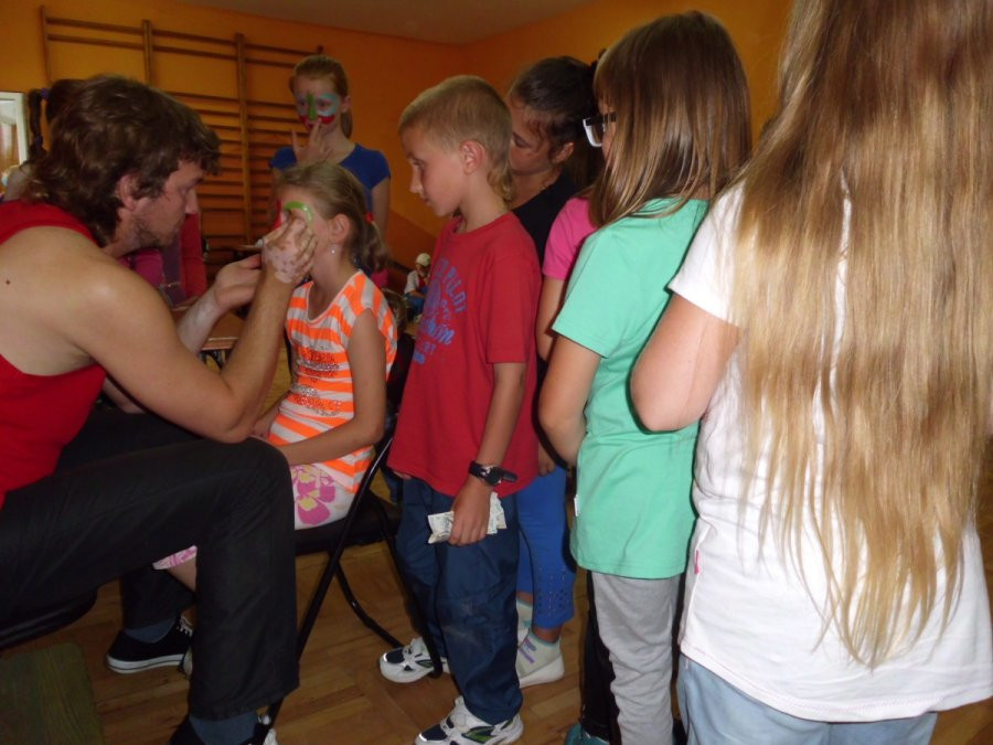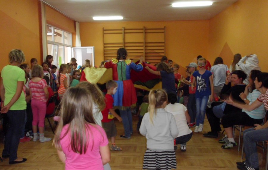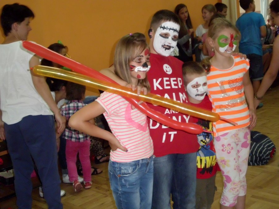 Zajęcia prowadzili animatorzy Teatru Lalek PINOKIO. Zabawy z chustą animacyjną, malowanie twarzy oraz tworzenie balonowych serc, kwiatów i zwierzątek - to pomysł na piątkowe popołudnie. Młodzi ludzie chętnie i aktywnie włączyli się do zabawy. Nie zabrakło również wolontariuszek oraz mam, które towarzyszyły swoim dzieciom. W zabawie wzięła udział również grupa kolonijna z Łodzi spędzająca wakacje nad Jeziorem Rożnowskim.