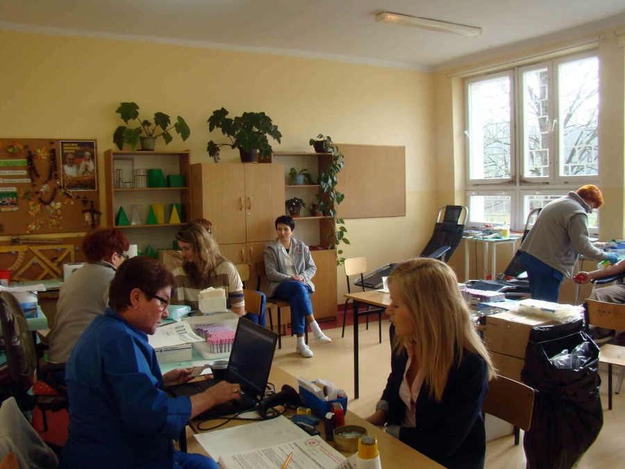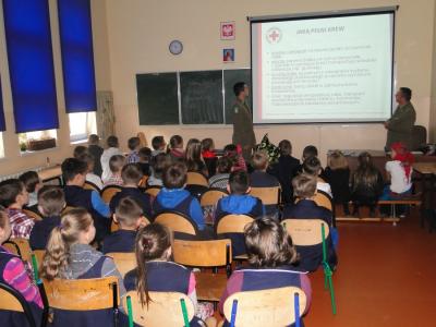 13 listopada na zebraniu z Rodzicami Samorząd Uczniowski pod kierunkiem Pani Katarzyny Marchacz i Pani Katarzyny Wójtowicz przygotował krótką prezentację na temat krwiodawstwa oraz rozdawał ulotki informacyjne. Rodzice mogli się dowiedzieć między innymi, dlaczego warto zostać honorowym dawcą krwi, kto może oddawać krew, jakie z tego tytułu wynikają przywileje i uprawnienia. Dnia 19 listopada do naszej szkoły przyjechali starszy chorąży Damian Podgórski oraz sierżant Grzegorz Strączek z Karpackiego Ośrodka Wsparcia Straży Granicznej oraz z Klubu Honorowych Dawców Krwi przy Orkiestrze Reprezentacyjnej Straży Granicznej. Panowie przeprowadzili prelekcje dla uczniów szkoły podstawowej w klasach 4 – 6 oraz gimnazjum. Uczniowie obejrzeli prezentację oraz filmiki dotyczące krwiodawstwa. Celem tych spotkań było uwrażliwienie uczniów na potrzeby ludzi chorych i popularyzowanie idei honorowego krwiodawstwa ze szczególnym podkreśleniem bezinteresowności daru krwi. Powstały kolorowe ulotki i plakaty, które rozwieszone zostały na tablicach informacyjnych w okolicznych miejscowościach. Informacje o planowanej akcji pojawiły się na stronie internetowej szkoły,