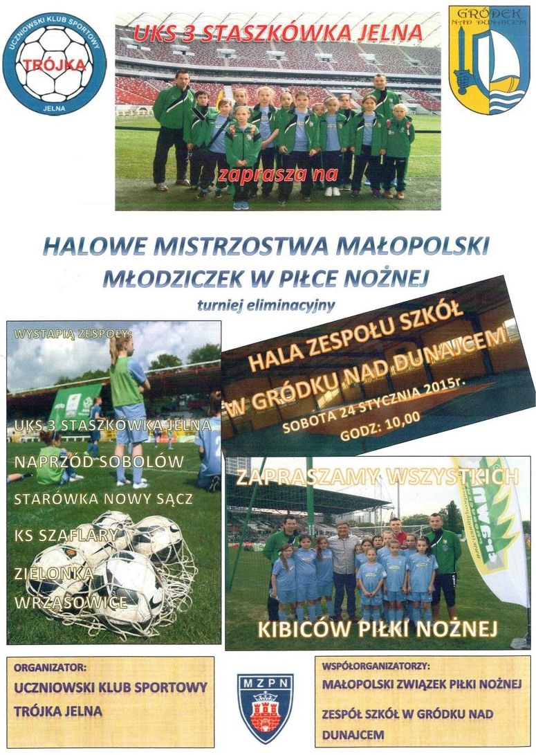 24 stycznia 2015r. w Gródku nad Dunajcem odbędzie się turniej eliminacyjny Halowych Mistrzostw Małopolski w Piłce Nożnej Dziewcząt (młodziczki - rocznik 2002-2003)