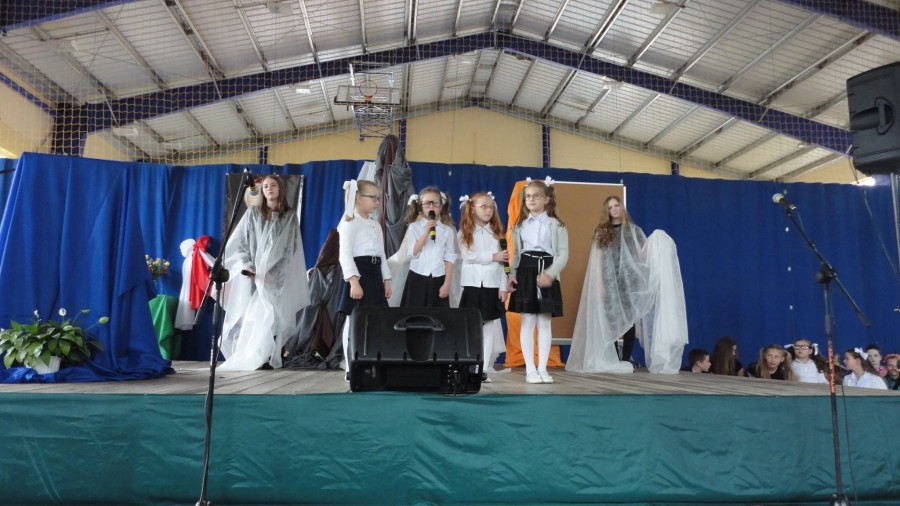 Uroczysta akademia rozpoczęła się od przemówień Pani Dyrektor Zespołu Szkół - Zofii Wolak oraz Wójta Gminy – Józefa Tobiasza. Szkolne Koło Teatralne przygotowało piękną - pełną refleksji akademię okolicznościową. Potem miały miejsce konkursy: w plastycznym - 1 miejsce zdobyła kl. II szkoły podstawowej, 2 miejsce kl. 1 i 3, a w drużynowym Turnieju Wiedzy o Patronie na 1 miejscu uplasowała się kl. VI, na drugim kl. V, a na 3 - kl. I gimnazjum.