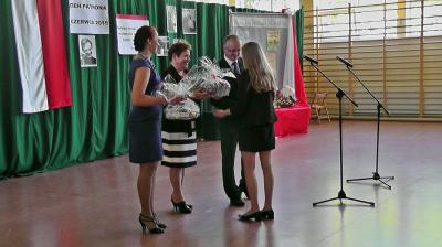 W dalszej części uroczystości Pan Dyrektor Ryszard Baziak wręczył pamiątkowe medale wyróżniającym się uczniom, za kierowanie się w życiu ideami Patrona. W trakcie gali nagrodzono również uczestników konkursów oraz biegów na orientację, rozegranych w ramach przygotowań do imprezy. Pomiędzy ogłaszaniem zwycięzców i wręczaniem nagród widzowie uczestniczyli w muzyczno - poetyckiej uczcie, ponieważ nie zabrakło wzruszających pieśni i nastrojowych wierszy.
