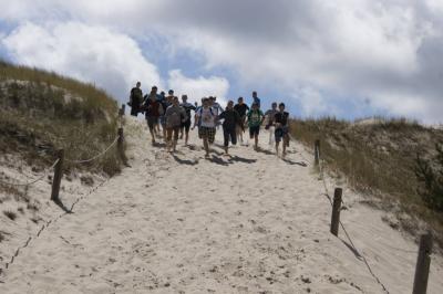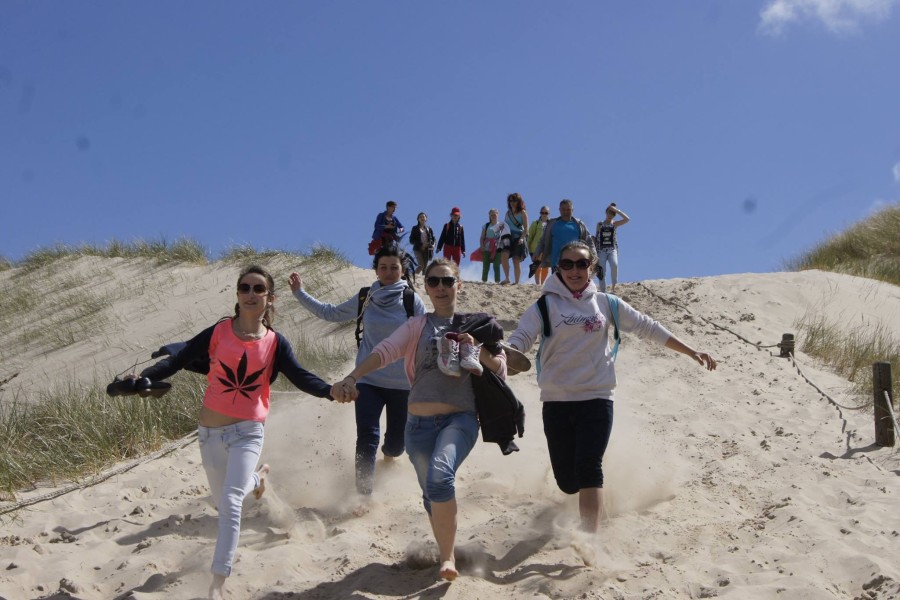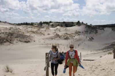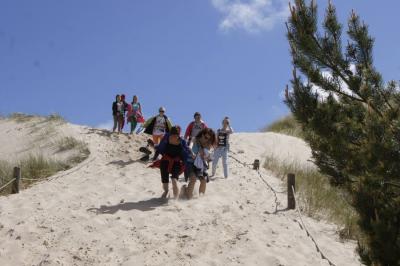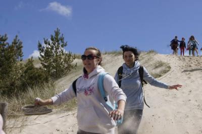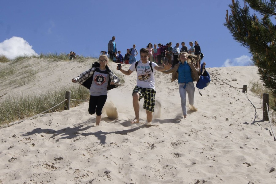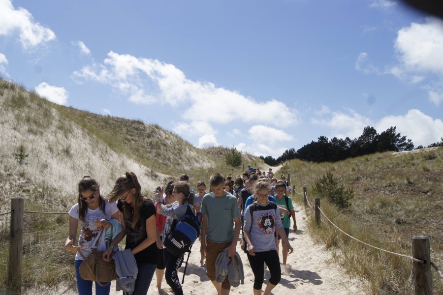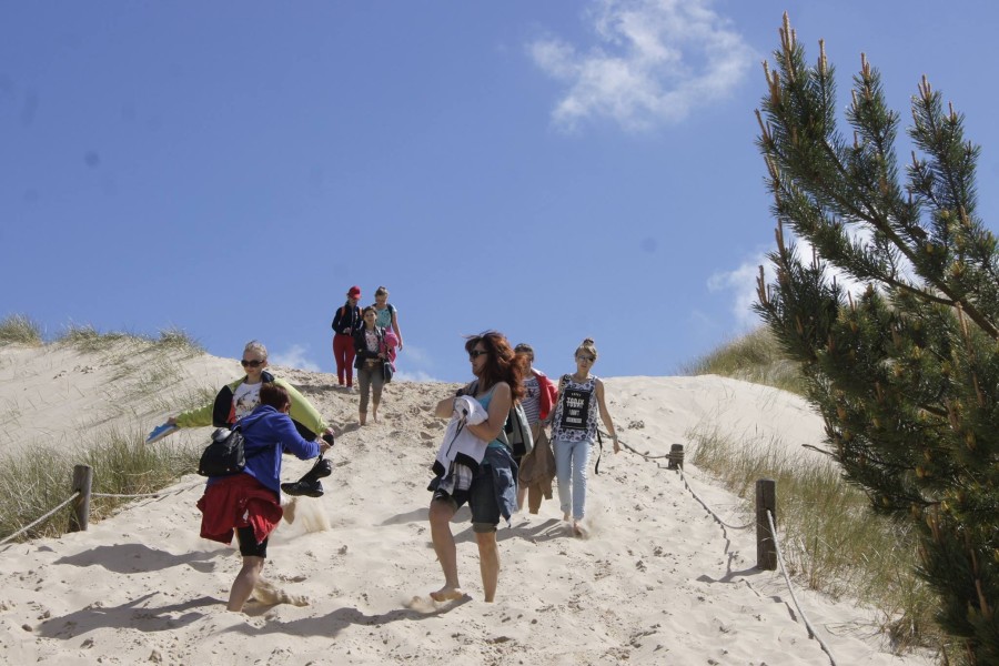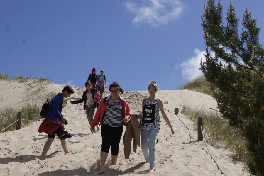 Kolejny dzień rozpoczęliśmy już o godz:.7:30. Dziś czekał na nas Słowiński Park Narodowy. Zanim jednak tam się wybraliśmy, postanowiliśmy najpierw zdobyć o nim parę informacji. W tym celu wybraliśmy się do Muzeum Słowińskiego Parku Narodowego w Smołdzinie. Tam zobaczyliśmy faunę oraz florę parku oraz mogliśmy zobaczyć rożne rodzaje wydm, które tam można spotkać. Pan przewodnik ciekawie i w skrócie opowiedział o tym, co powinniśmy wiedzieć. Gdy znaliśmy już wszystko w teorii, przyszedł czas na praktykę, ruszyliśmy więc w kilkugodzinną wędrówkę. Początkowo poruszaliśmy się lasem, aż w końcu naszym oczom ukazało się ogromne pole piasku. Zachwycające wydmy i gorący piasek pod nogami sprawił, że prawie nie czując zmęczenia szybko pokonaliśmy cała trasę. Zorganizowaliśmy także zawody, kto najszybciej zbiegnie z wydmy. Piasek niestety utrudniał konkurencje, ale przez to było zabawniej. Poprzez Słowiński Park Narodowy dotarliśmy do Latarni w Czołpinie, nieco niższej niż ta, na którą wchodziliśmy dzień wcześniej.