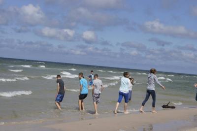 Po całym dniu emocji wróciliśmy do ośrodka na kolację, a potem poszliśmy do pokojów. Nie mogliśmy jednak, będąc nad morzem, nie zobaczyć jego samego. Wieczorem wybraliśmy się więc pierwszy raz nad wybrzeże. Były to niezapomniane chwile, wszyscy nie patrząc na temperaturę wody, które była przejmująco zimna, wchodziliśmy do morza. Wróciliśmy przemoczeni ale szczęśliwi.