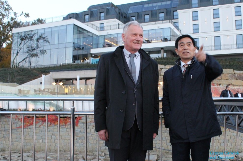 Podczas wizyty zagranicznych gości nie mogło oczywiście zabraknąć zwiedzania centrum Gródka nad Dunajcem oraz wizyty w Hotelu HERON w Siennej. Szczególną uwagę gości z Chin zwróciły wspaniałe widoki z hotelowego pomostu, po którym oprowadzał wszystkich P. Wiesław Pióro – Dyrektor z Firmy WIŚNIOWSKI.