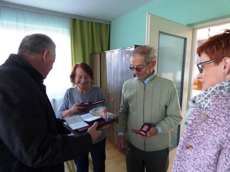 Niestety z różnych względów nie wszyscy Jubilaci mogli wziąć udział w uroczystościach. Medale, kwiaty, upominki i życzenia z gratulacjami odebrali od Wójta w domach.