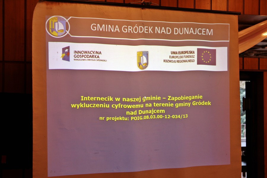 W środę 9 grudnia 2015r. odbyła się konferencja kończąca projekt pn.: „Internecik w naszej gminie – Zapobieganie wykluczeniu cyfrowemu na terenie gminy Gródek nad Dunajcem”. Dzięki środkom pozyskanym z Programu Operacyjnego Innowacyjna Gospodarka 124 gospodarstwa domowe z terenu naszej gminy otrzymały zestawy komputerowe oraz bezpłatny dostęp do Internetu.
