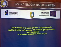 W środę 9 grudnia 2015r.  odbyła się konferencja kończąca projekt pn.: „Internecik w naszej gminie – Zapobieganie wykluczeniu cyfrowemu na terenie gminy Gródek nad Dunajcem”. Dzięki środkom pozyskanym z Programu Operacyjnego Innowacyjna Gospodarka 124 gospodarstwa domowe z terenu naszej gminy otrzymały zestawy komputerowe oraz bezpłatny dostęp do Internetu. Komputery trafiły również do jednostek organizacyjnych gminy.