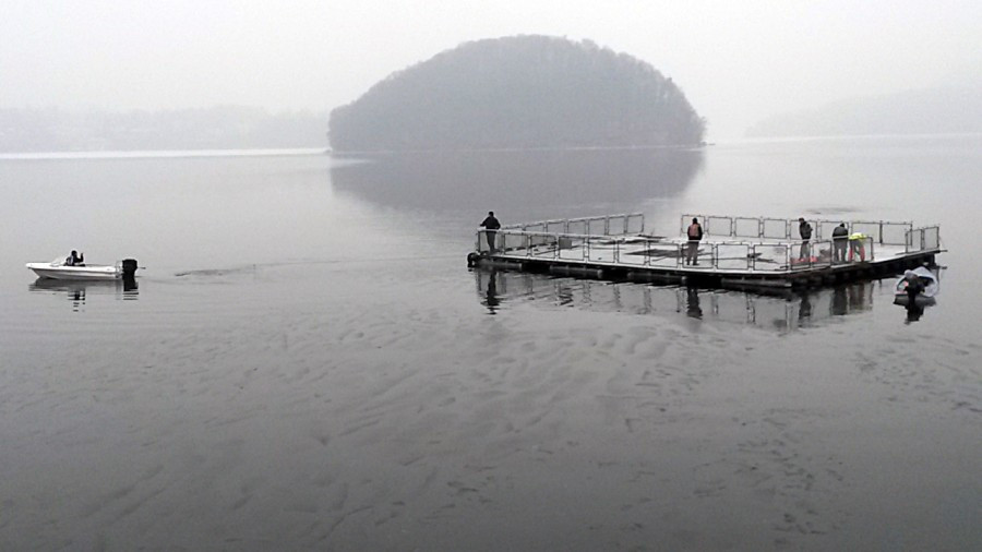 W ubiegłym roku, sprawą opuszczonej, rdzewiejącej platformy, zdanej na łaskę fal jeziora i smagającego ją wiatru, zajęła się grupa żeglarzy zrzeszonych w stowarzyszeniu Centrum Sportów Wodnych Jeziora Rożnowskiego (Stowarzyszenie zarejestrowane w KRS pod numerem 0000554892). Zarząd Stowarzyszenia zwrócił się z prośbą do Wójta Gminy Gródek nad Dunajcem o przekazanie pływającego wraku. Wójt Gminy przychylił się do prośby i żeglarze przystąpili do działania. Ustalono, że konstrukcja platformy pozwala na wykonanie z jej elementów trzech niezależnych pomostów żeglarskich. Wśród chętnych powstały trzy grupy żeglarzy z Gródka nad Dunajcem, Bartkowej i Rożnowa. Zdecydowano, że każda z grup zajmie się taką częścią platformy, aby razem powstały trzy pomosty.