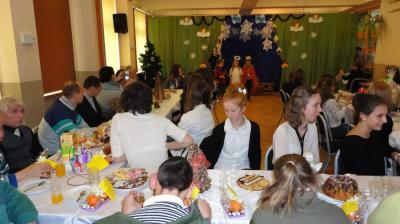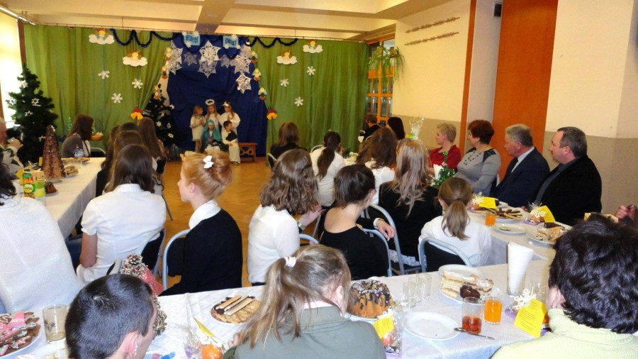 Poprzez wspólne kolędowanie, występ szkolnego kółka muzycznego pod opieką p. D. Jabłońskiej oraz jasełka w wykonaniu kl. 2 SP pod czujnym okiem wychowawczyni p. I. Wolak i p. pedagog B. Mlyczyńskiej, organizatorzy spotkania starali się umilić czas pensjonariuszom. Nie zabrakło słodkiego poczęstunku i skromnych podarunków.