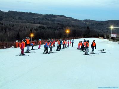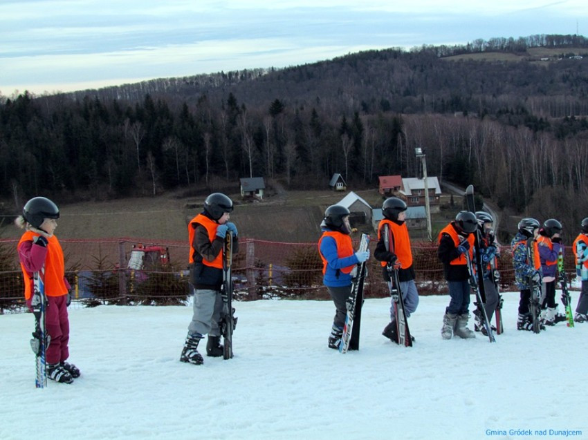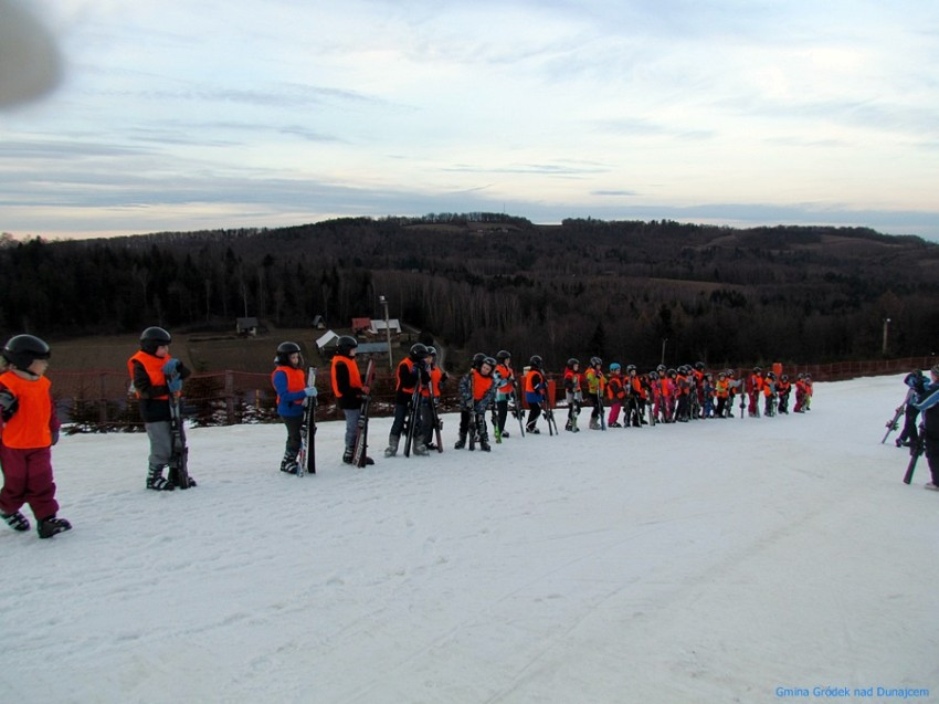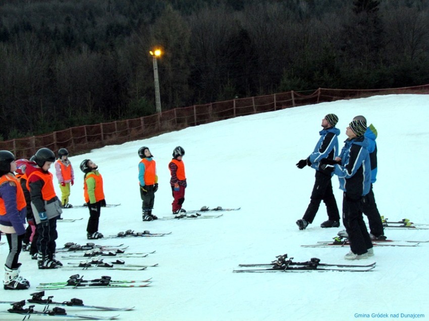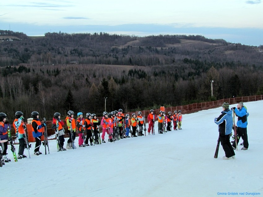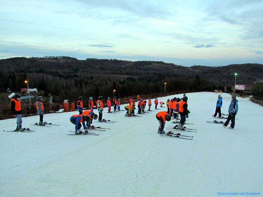 30 uczniów z klas III i IV szkół podstawowych z terenu naszej gminy rozpoczęło wczoraj zajęcia na stoku narciarskim w Siemiechowie w ramach projektu "Jeżdżę z głową" realizowanego przez Urząd Gminy w Gródku nad Dunajcem przy dofinansowaniu z budżetu Województwa Małopolskiego. Za oknem wiosna, ale na stoku, ku zadowoleniu młodych narciarzy, śniegu na razie nie brakuje...