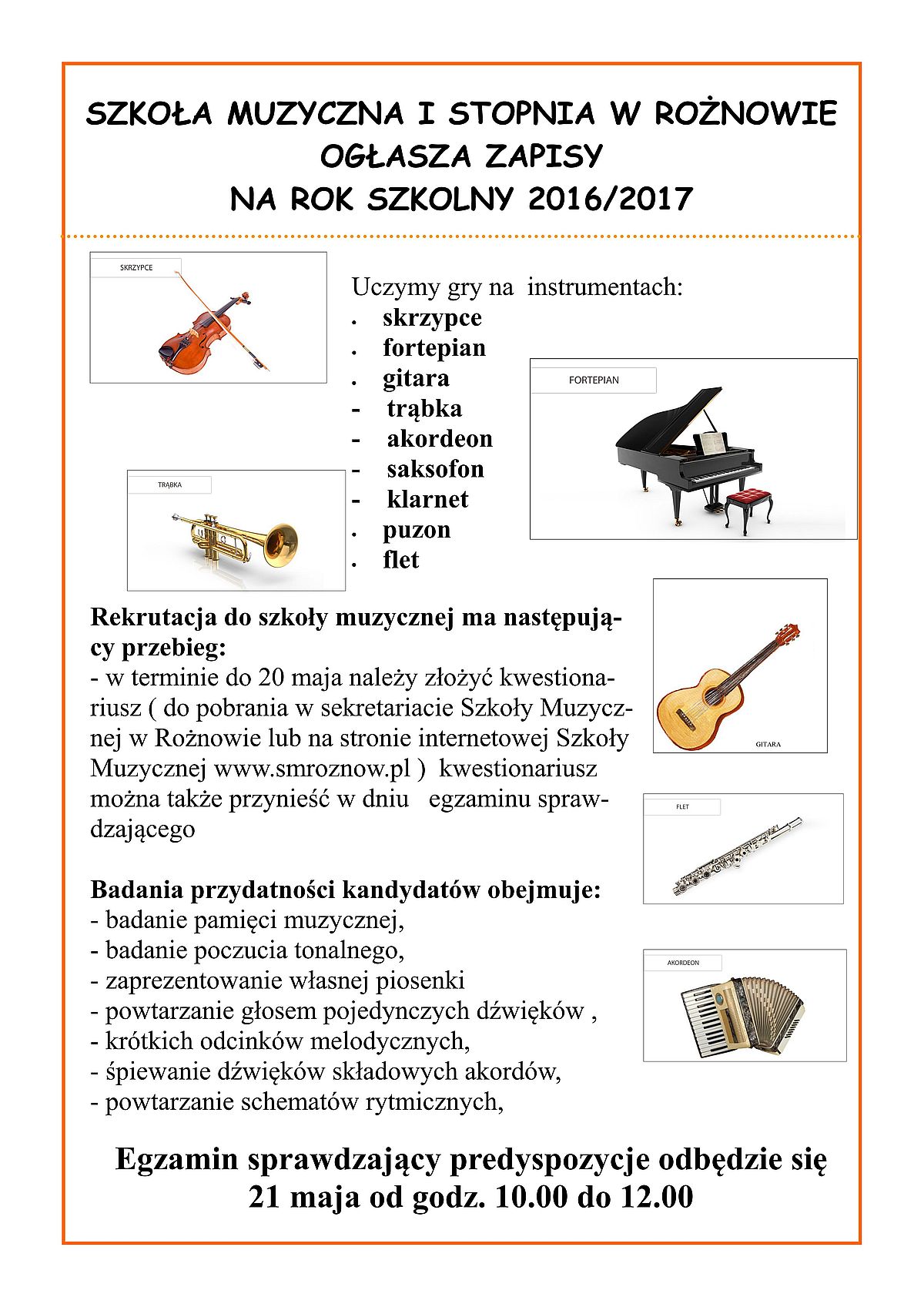 Szkoła Muzyczna I Stopnia w Rożnowie zaprasza dzieci i młodzież na DZIEŃ OTWARTY. który zaplanowano 25.04.2016 godz. 16.00. W programie między innymi występy uczniów szkoły, występ szkolnej orkiestry dętej oraz prezentacja instrumentów muzycznych.