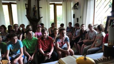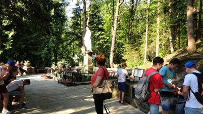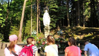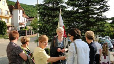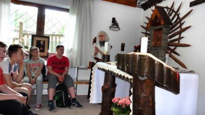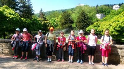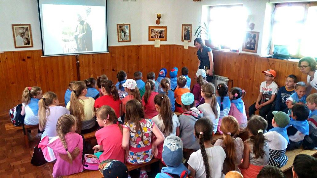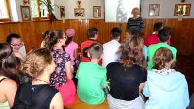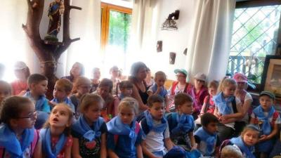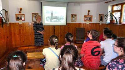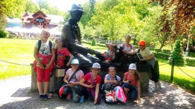 Następnego dnia cała społeczność uczniowska wraz z „zerówkami” oraz gronem pedagogicznym na czele z Dyrekcją Szkoły: Panią Zofią Wolak i Panią Bogumiłą Gąska świętowała Dzień Patrona w Krynicy. Tam odwiedzili Ośrodek Wychowawczo – Formacyjny – „Ostoję” – miejsce szczególnie związane z dziełem Sługi Bożego Kardynała Wyszyńskiego. W kaplicy pod wezwaniem Jasnogórskiej Matki Kościoła, którą w 1978 r. poświęcił Prymas Polski, społeczność szkolna obejrzała pamiątki z Nim związane i modliła się o Jego beatyfikację. Uczestniczyli też w prelekcjach na temat Patrona swojej szkoły poprowadzonych m.in. przez Panią Iwonę Czerwińską z Instytutu Prymasowskiego. Ponadto podzieleni na grupy wiekowe obejrzeli wystawę poświęconą Kardynałowi Wyszyńskiemu, Muzeum Zabawek i wyjechali na Górę Parkową, spacerowali deptakiem i oczywiście zajadali się krynickimi lodami. Tego niezwykłego dnia uczniowie pogłębili wiedzę o swoim Patronie i miło spędzili czas. Takie lekcje poza szkołą i kontakt z Panią Iwoną Czerwińską - osobą, która znała kard. Stefana Wyszyńskiego - na pewno na długo pozostaną w ich pamięci.