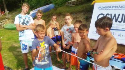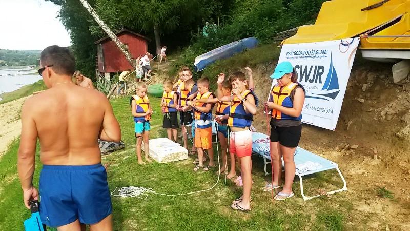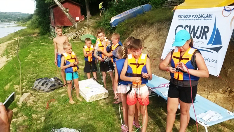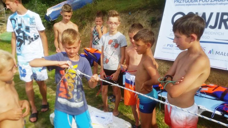 W poprzedni weekend najmłodsi załoganci z zapałem uczestniczyli w zajęciach z podstawowej teorii żeglarskiej, przeprowadzonych przez Stowarzyszenie Centrum Sportów Wodnych Jeziora Rożnowskiego w ramach projektu: „Przygoda pod żaglami – podstawy żeglarstwa dla najmłodszych załogantów”. Dzieci nauczyły się podstawowych węzłów: węzeł płaski, ratowniczy, ósemka, zderzakowy, knagowy.