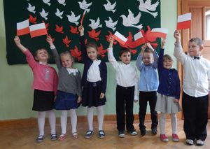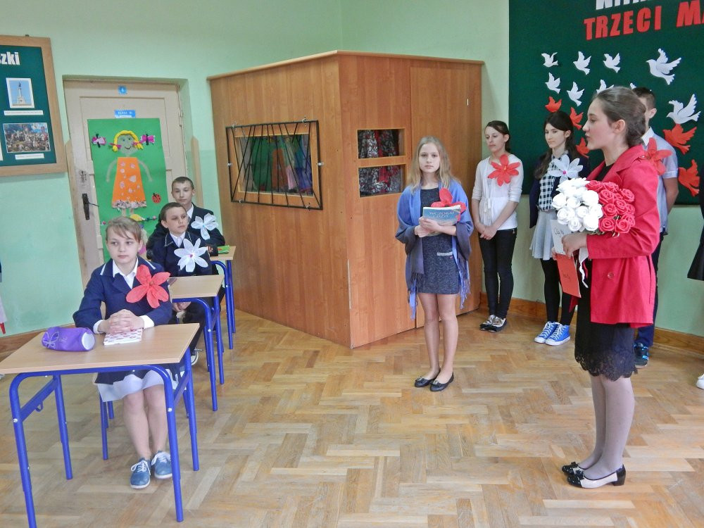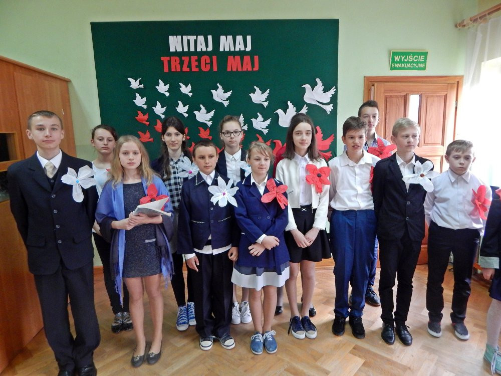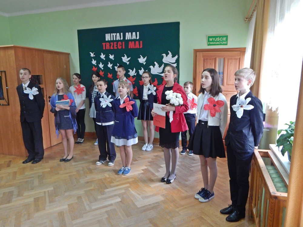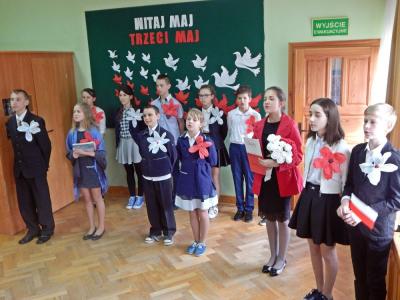 W murach szkolnych popłynęły nuty mazurka „Witaj, majowa jutrzenko” oraz innych patriotycznych piosenek. Cała szkoła przystroiła się biało-czerwonymi barwami.