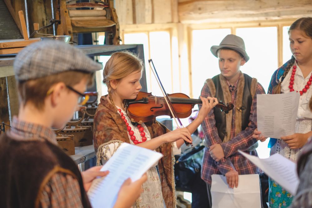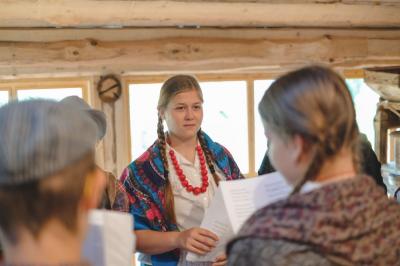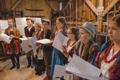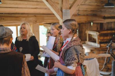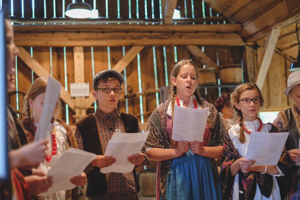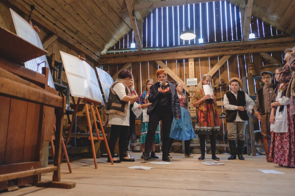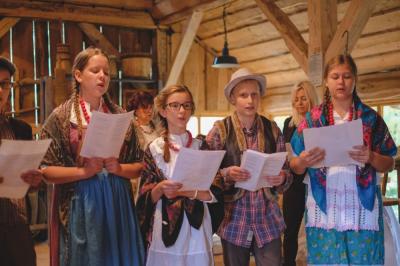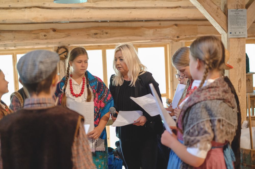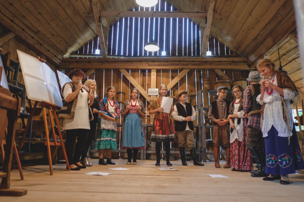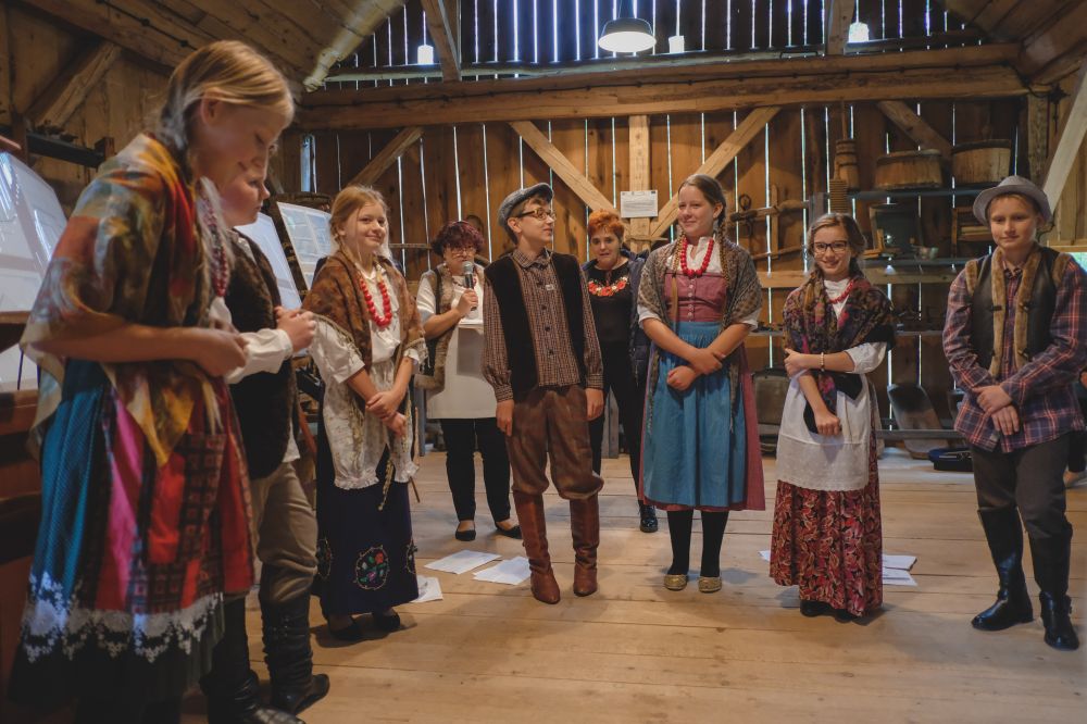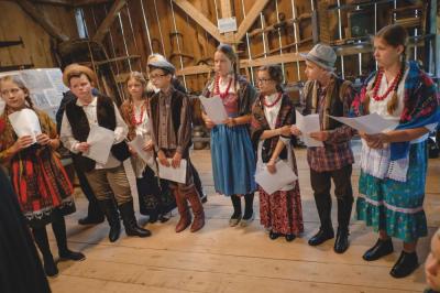 Gdy jesień nadeszła, gromadzili się w domach, u sąsiadów, bo i w polach porządki zrobione, i swoboda większa wieczorami była. Długie jesienno–zimowe wieczory wypełniała wspólna praca kobiet przy tkaniu, przędzeniu, darciu pierza. Pielęgnowano staropolskie obyczaje, z których wiele przetrwało do dziś.„Rozkwitały pąki białych róż”, „Wojenko, wojenko”, „Czerwone maki na Monte Cassino” - to pieśni, które dla jednych były przywołaniem w pamięci minionych wydarzeń i wzruszeniem, a dla najmłodszych uczestników – lekcją historii. Ciekawy program artystyczny - przygotowany przez wystylizowaną na ówczesne czasy młodzież ze SP im. J. Korczaka w Roztoce Brzezinach pod opieką Pań: Lucyny Szarek i Ewy Prusak - wprowadził Gości w nastrój, niczym wehikuł czasu prosto do Reymontowskich Lipiec–bo mali artyści przedstawili