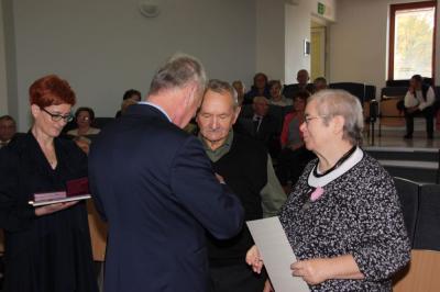 18 października br. w Ośrodku Rekolekcyjnym "ARKA" odbyło się doroczne spotkanie par małżeńskim z 50-letnim stażem. Z okazji "złotych godów " 18 dostojnych par otrzymało medale Prezydenta Rzeczypospolitej Polskiej za długoletnie pożycie małżeńskie. Gratulacje oraz życzenia składali również przedstawiciele władz gminnych, powiatowych i kościelnych.