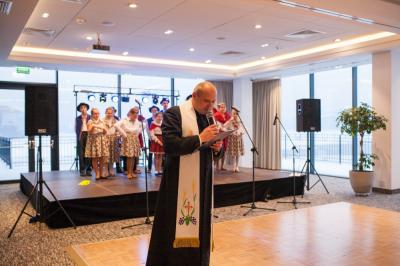 Z kościoła wszyscy przenieśli się do Hotelu HERON gdzie organizatorzy przygotowali dla dostojnych seniorów coś „dla ciała i dla ducha”. Świąteczną atmosferę podkreśliło łamanie się opłatkiem, który pobłogosławił ks. Stanisław Serafin – wikariusz z Siennej oraz kolędowanie z Zespołem „Siennioki”. O smaczny poczęstunek zadbał szef kuchni Hotelu HERON. Najważniejsza była jednak wspaniała atmosfera i miłe towarzystwo, które sprawiły, że już chyba nikt w Siennej i Lipiu nie wyobraża sobie początku roku bez wspólnego „Dnia Seniora”.