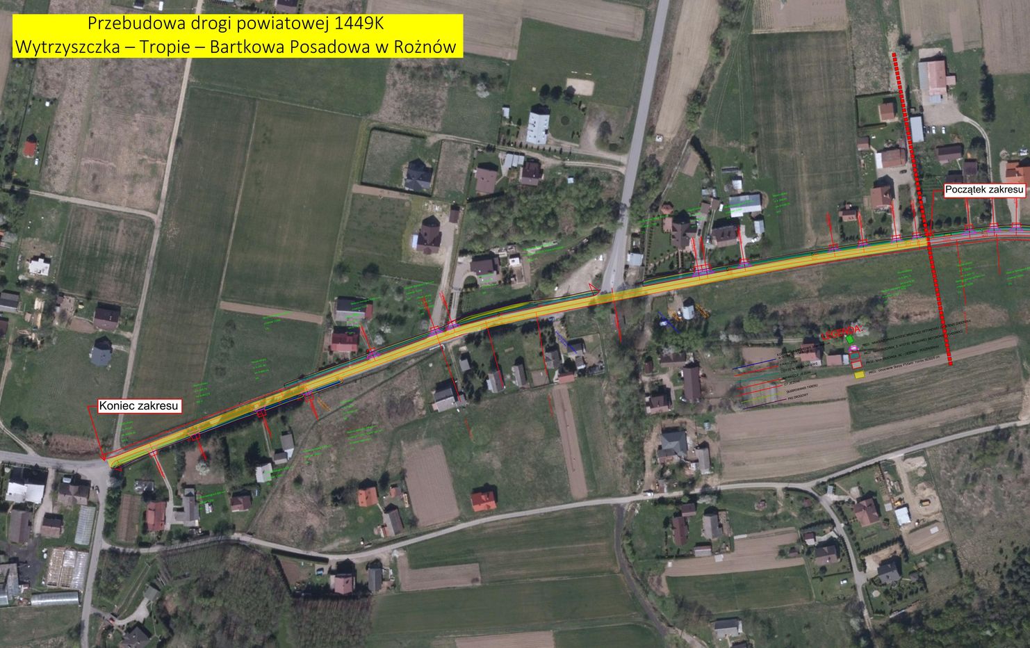 Łączna długość planowanego chodnika od skrzyżowania z drogą gminną Rożnów – Wiesiółka (koniec obecnego chodnika) za skrzyżowanie z drogą Witowice-Różnów wynosić będzie ok. 550 mb. Przy okazji poszerzona zostanie również jezdnia. Dzięki inwestycji poprawi się bezpieczeństwo pieszych, a także kierowców na odcinku drogi gdzie panuje bardzo duży ruch szczególnie w okresie wakacji. Samochody turystów przyjeżdżających i wyjeżdżających znad Jeziora Rożnowskiego od strony drogi krajowej nr 75 przy jednoczesnym wzmożonym ruchu pieszych sprawiają, że bardzo często dochodzi do kolizji i bezpośredniego zagrożenia życia – zwłaszcza pieszych.