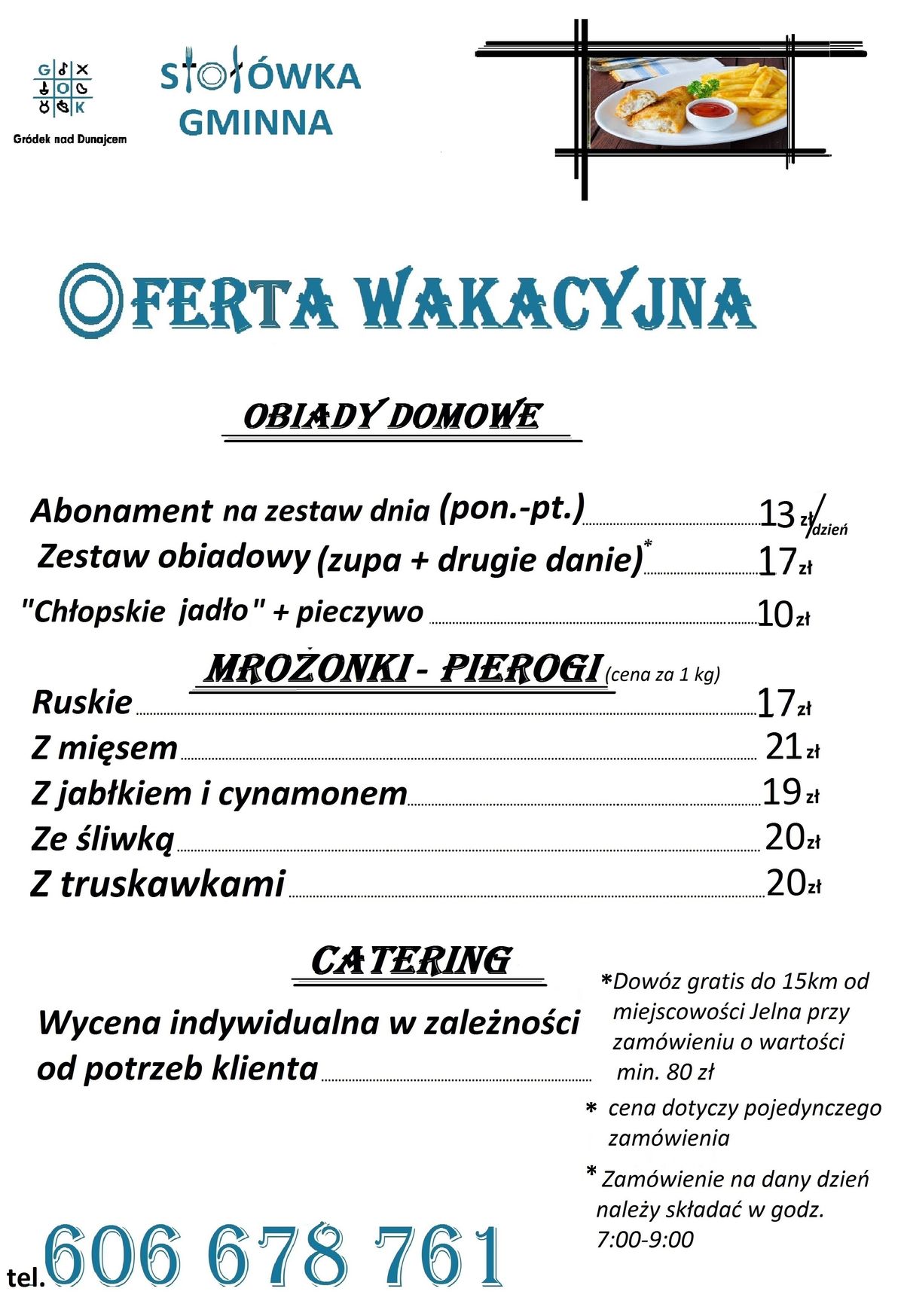 Dodatkowo zapraszamy do skorzystania z wakacyjnej oferty przygotowanej przez naszą gminną kuchnię. Dzięki niskiej cenie abonamentu na zestawy obiadowe rodzice będą mogli sami spróbować i ocenić czym w minionym roku szkolnym zajadały się ich pociechy.