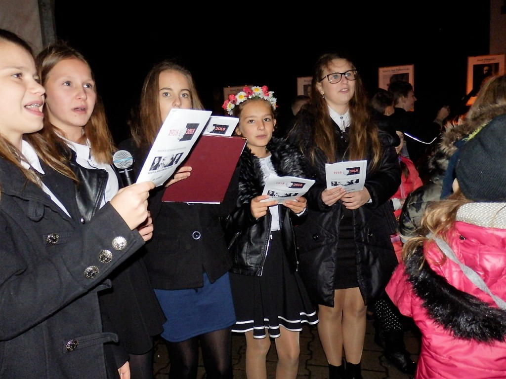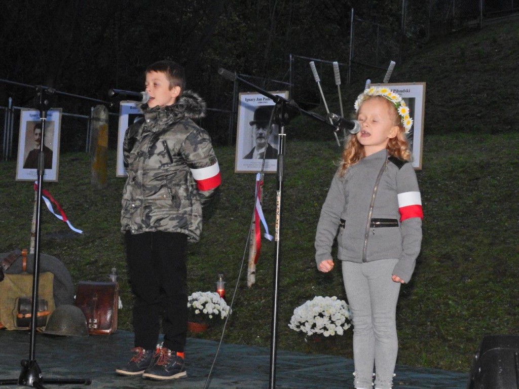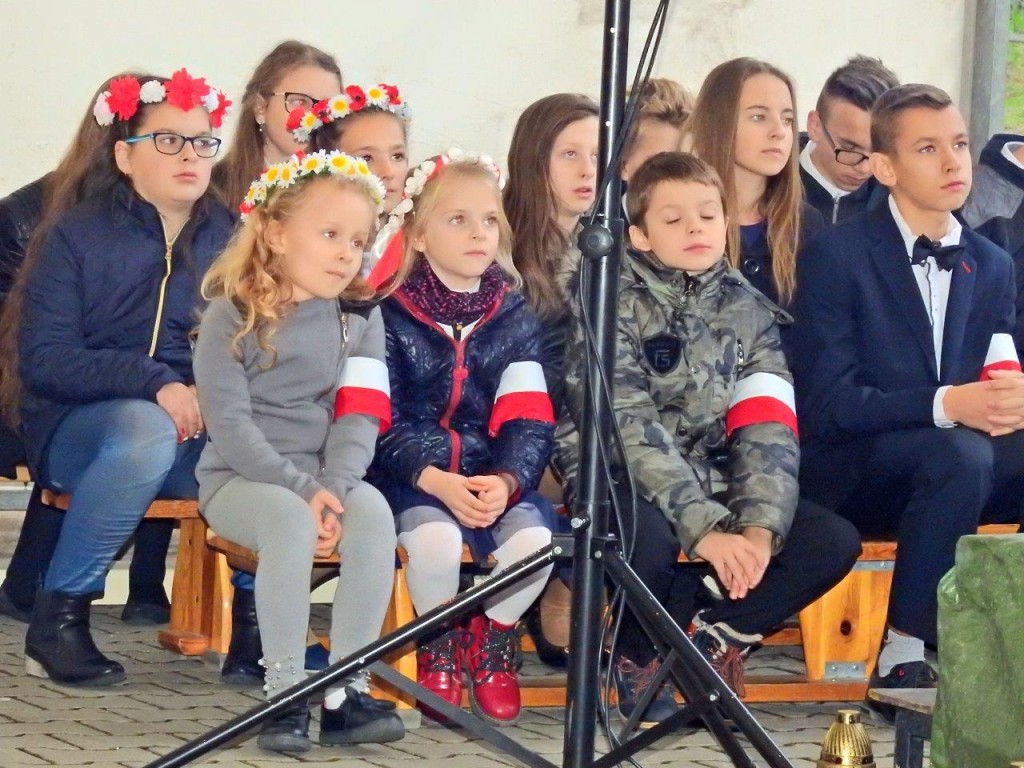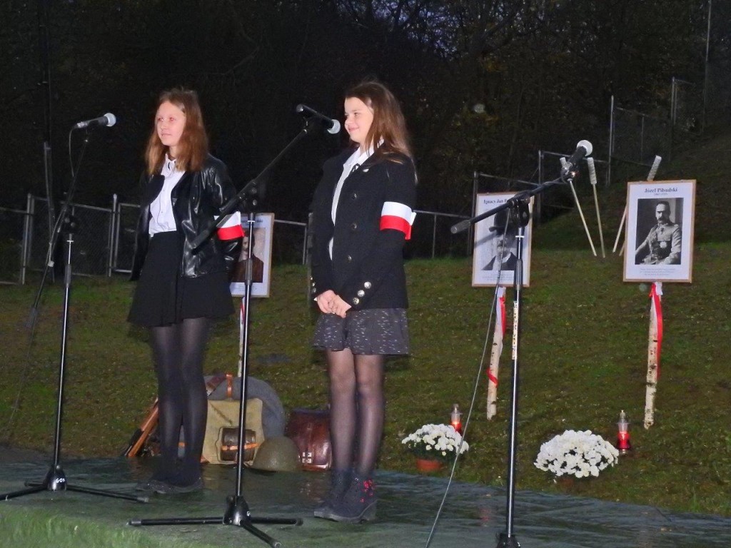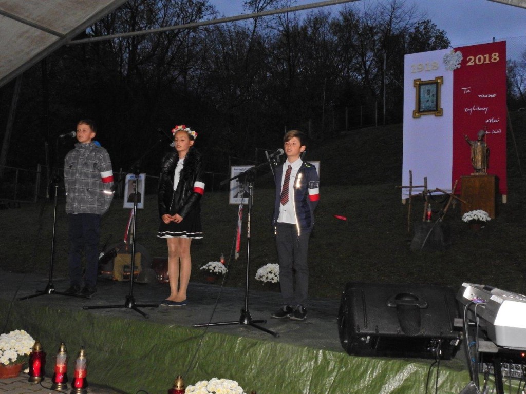 Po Mszy świętej zgromadzeni wspólnie odśpiewali hymn narodowy po czym Dyrektor Szkoły Podstawowej w Lipiu Pan Zygmunt Opiło przywitał przybyłych gości po czym, wprowadzając do dalszej części programu powiedział, że dzisiejsza data jest szczególna i wręcz symboliczna, symbolizuje bowiem wieloletni proces odzyskiwania przez Polskę niepodległości. Poprzez różne formy oporu, powstania przeciw zaborcom, pielęgnowanie języka polskiego w domach i Kościele, tworzenie organizacji patriotycznych (takich chociażby jak "TG Sokół"), walkę narodowowyzwoleńczą – Polacy przez wiele pokoleń dążyli do odzyskania niepodległości.