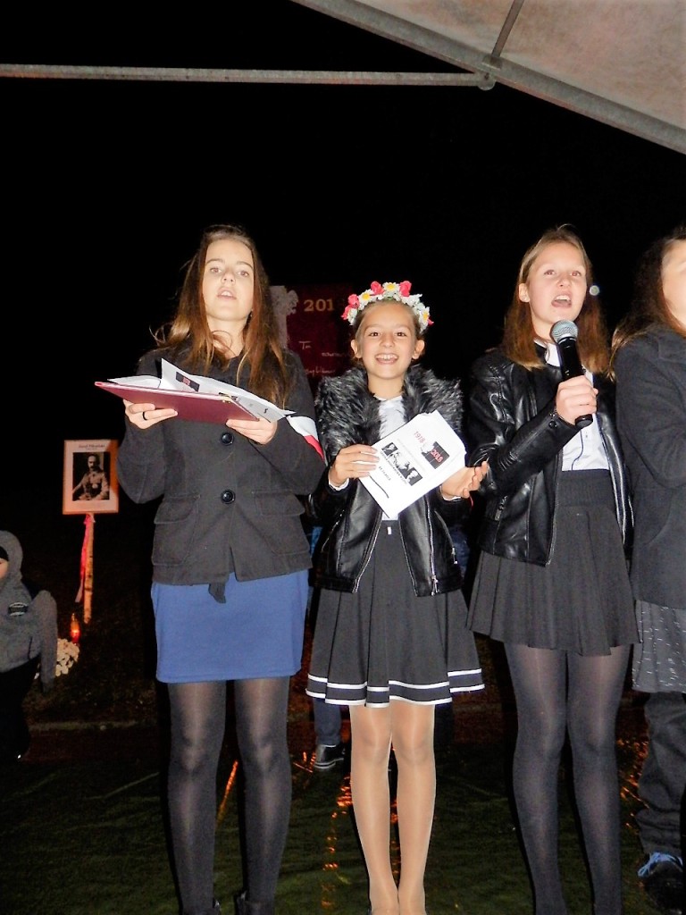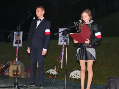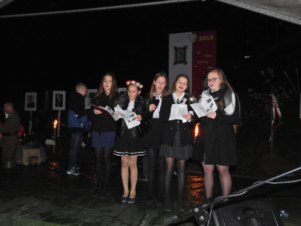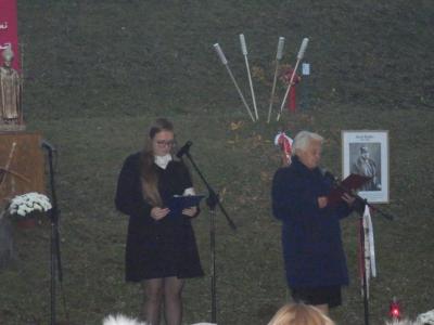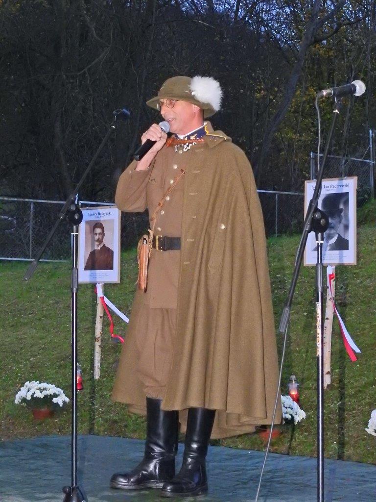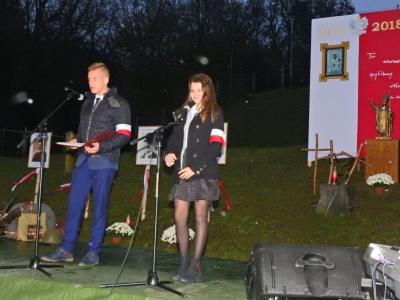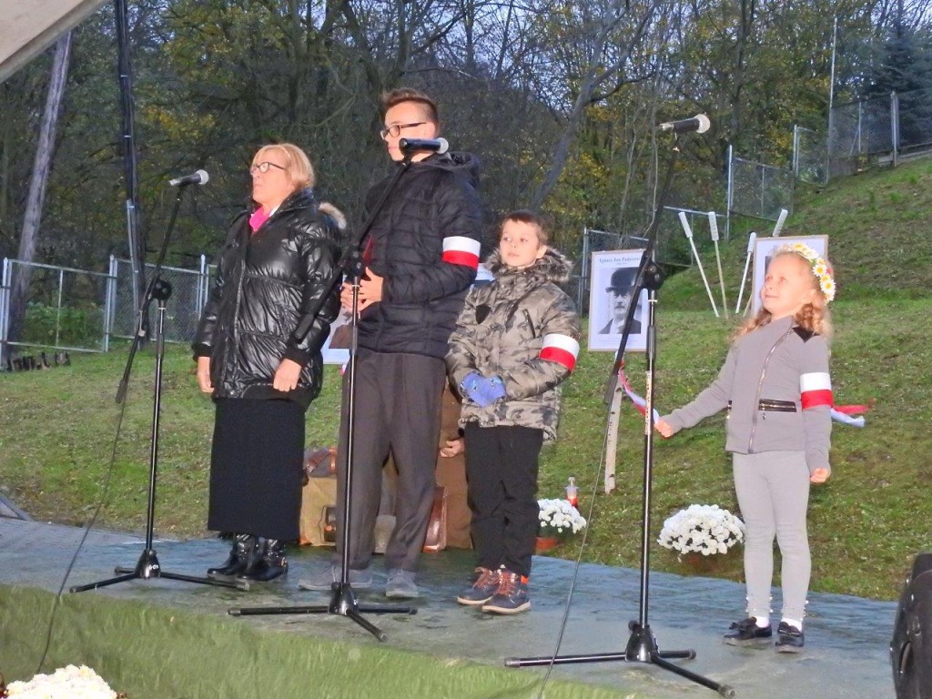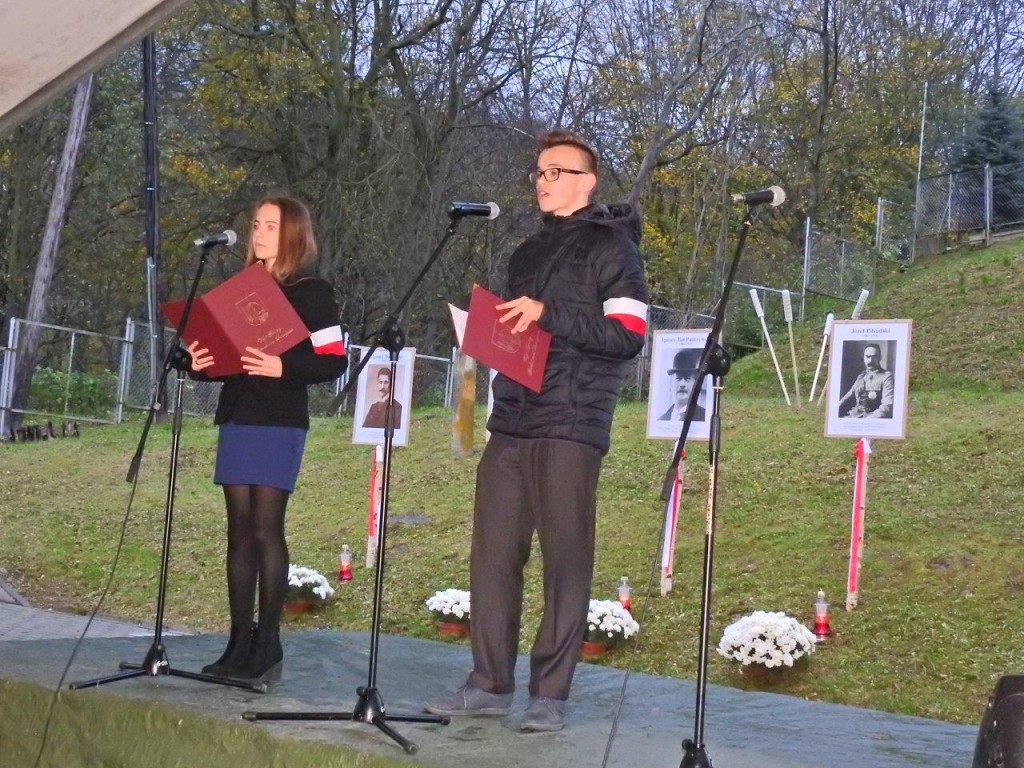 Po Mszy świętej zgromadzeni wspólnie odśpiewali hymn narodowy po czym Dyrektor Szkoły Podstawowej w Lipiu Pan Zygmunt Opiło przywitał przybyłych gości po czym, wprowadzając do dalszej części programu powiedział, że dzisiejsza data jest szczególna i wręcz symboliczna, symbolizuje bowiem wieloletni proces odzyskiwania przez Polskę niepodległości. Poprzez różne formy oporu, powstania przeciw zaborcom, pielęgnowanie języka polskiego w domach i Kościele, tworzenie organizacji patriotycznych (takich chociażby jak "TG Sokół"), walkę narodowowyzwoleńczą – Polacy przez wiele pokoleń dążyli do odzyskania niepodległości.