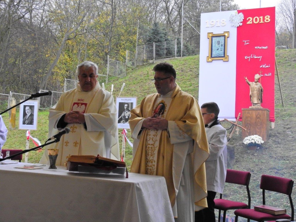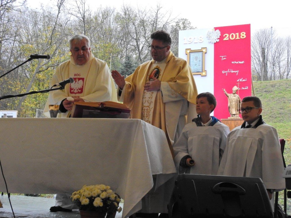 Rocznicowe obchody, licznie zgromadzeni uczestnicy rozpoczęli od udziału w uroczystej Mszy świętej polowej odprawionej za Ojczyznę na placu przyszkolnym przez księdza prałata Andrzeja Dźwigaja – proboszcza Parafii pw. św. Stanisława Biskupa w Siennej i księdza kapelana Bogumiła Bednarka który swoją szkolną edukację rozpoczynał w Szkole Podstawowej w Lipiu.