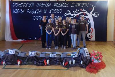 13 listopada 2018 roku w Szkole Podstawowej w Przydonicy odbył się GMINNY KONKURS PIEŚNI I PIOSENKI PATRIOTYCZNEJ "POLEGŁYM CHWAŁA, WOLNOŚĆ ŻYWYM! NIECH PŁYNIE W NIEBO DUMNY ŚPIEW..." W zmaganiach wzięło udział 26 solistów ze wszystkich Szkół Podstawowych z terenu Gminy Gródek nad Dunajcem.