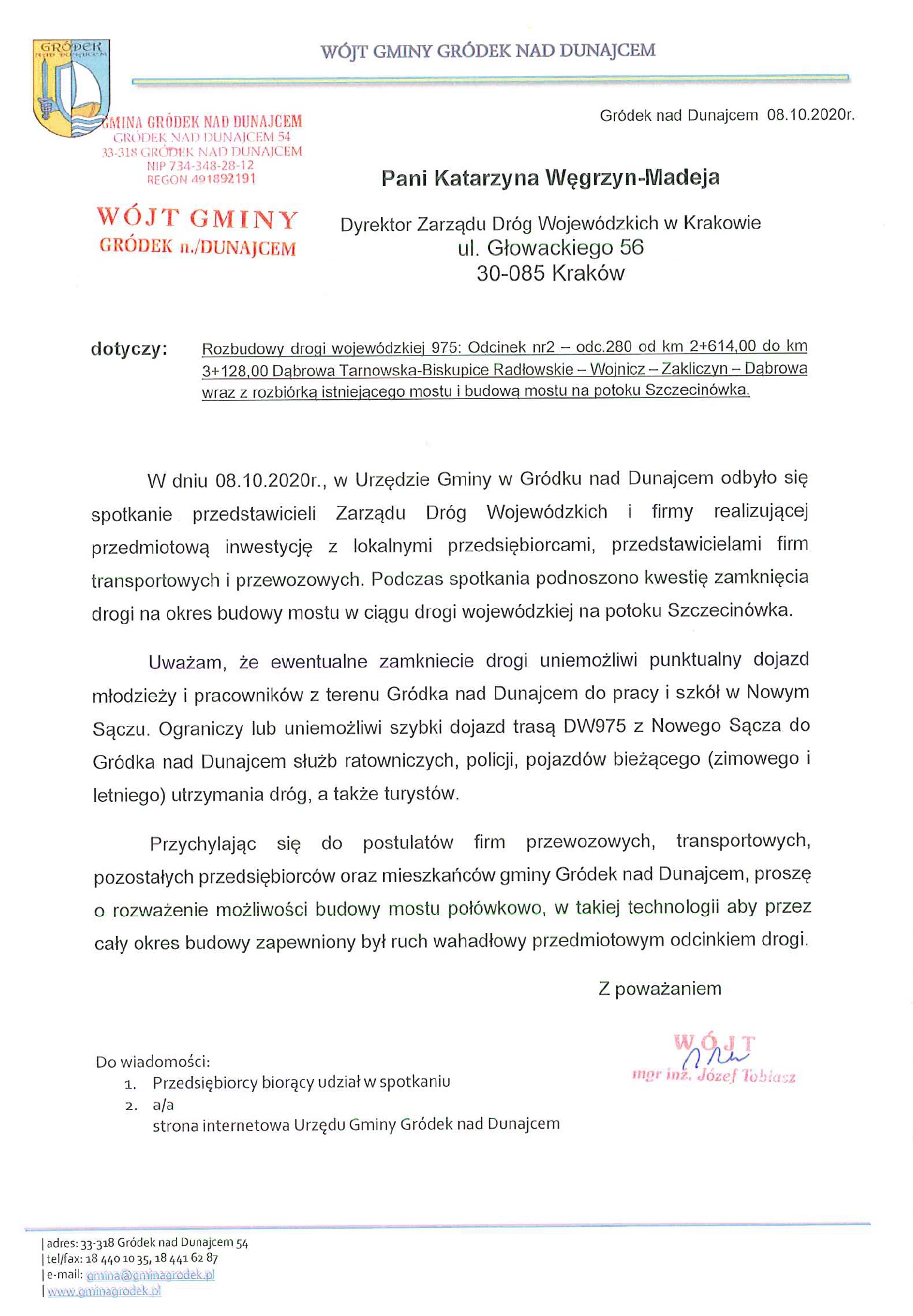 Stanowisko dot. zamknięcia mostu w ciągu drogi wojewódzkiej 975