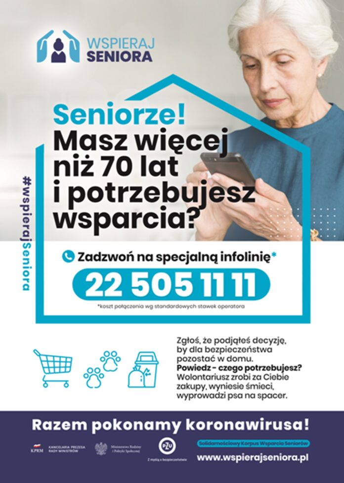 Jeśli w Twoim otoczeniu znajdują się osoby starsze wymagająca pomocy możesz również to zgłosić przez infolinie.