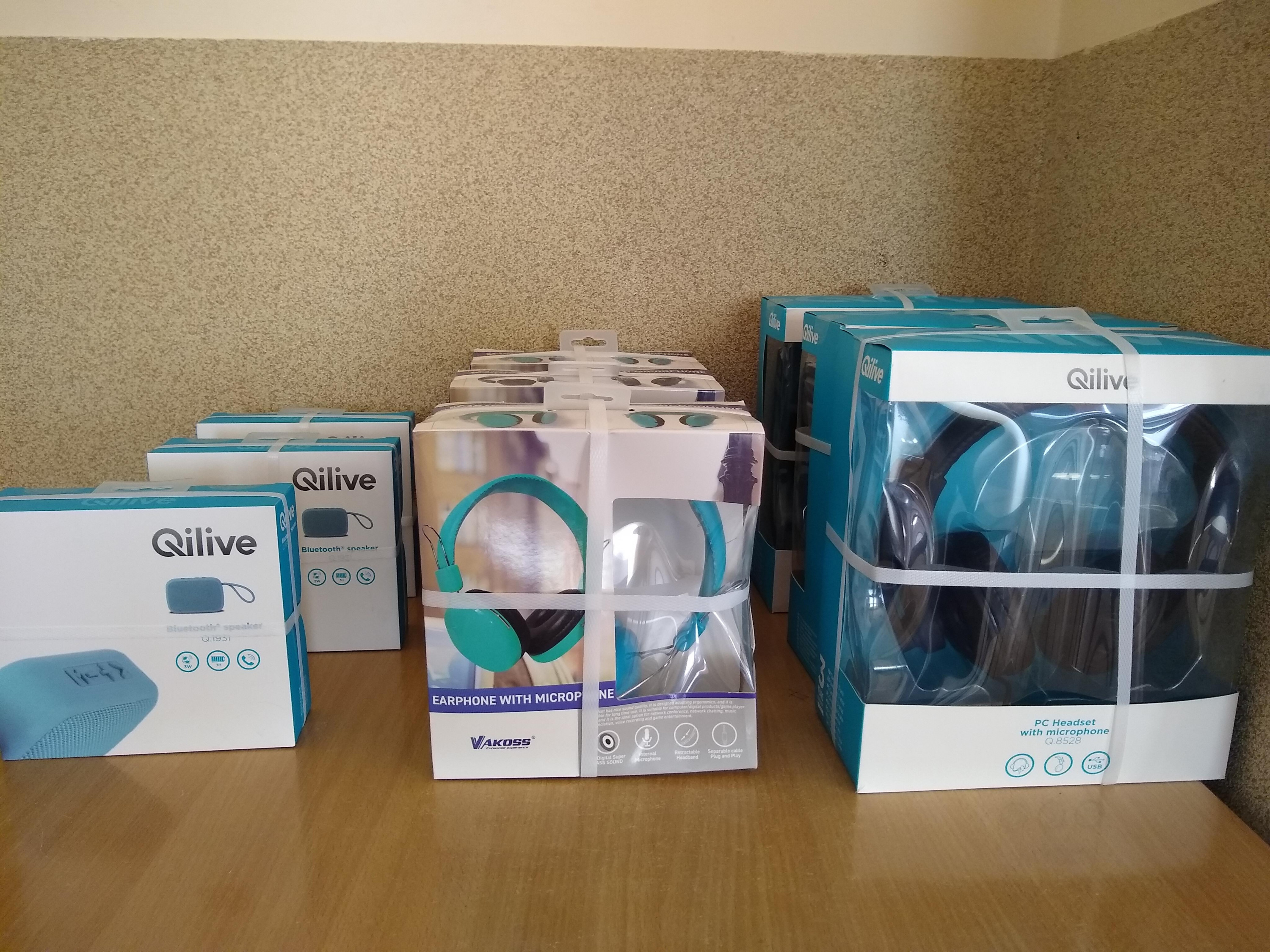 Zakupiono następujące nagrody rzeczowe – 3x słuchawki nauszne, 3x słuchawki PC, 3x Głośniki Qilive. Uczestnicy otrzymali również dyplomy okolicznościowe.
