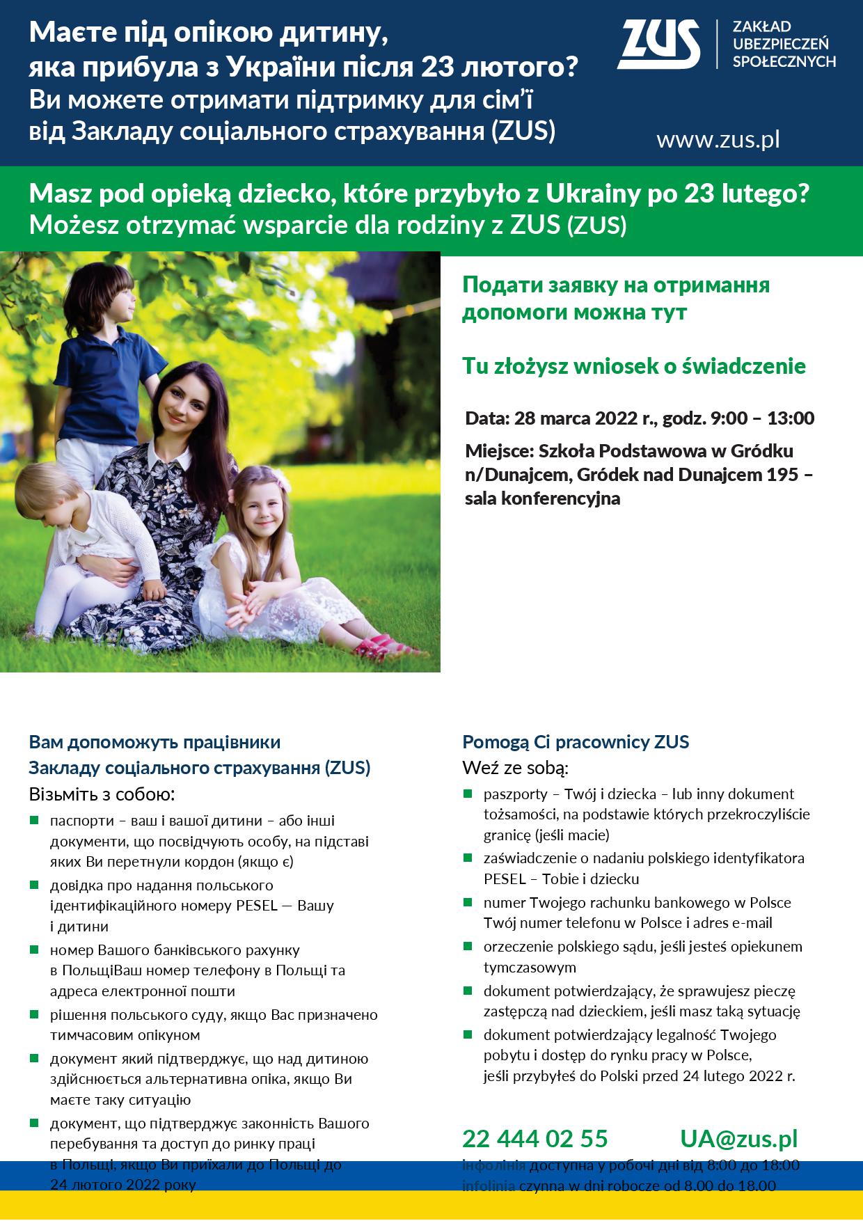Te informacje są również publikowane w języku ukraińskim na stronie internetowej ZUS www.zus.pl