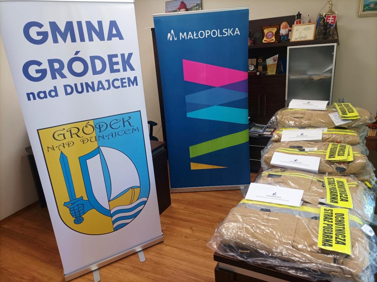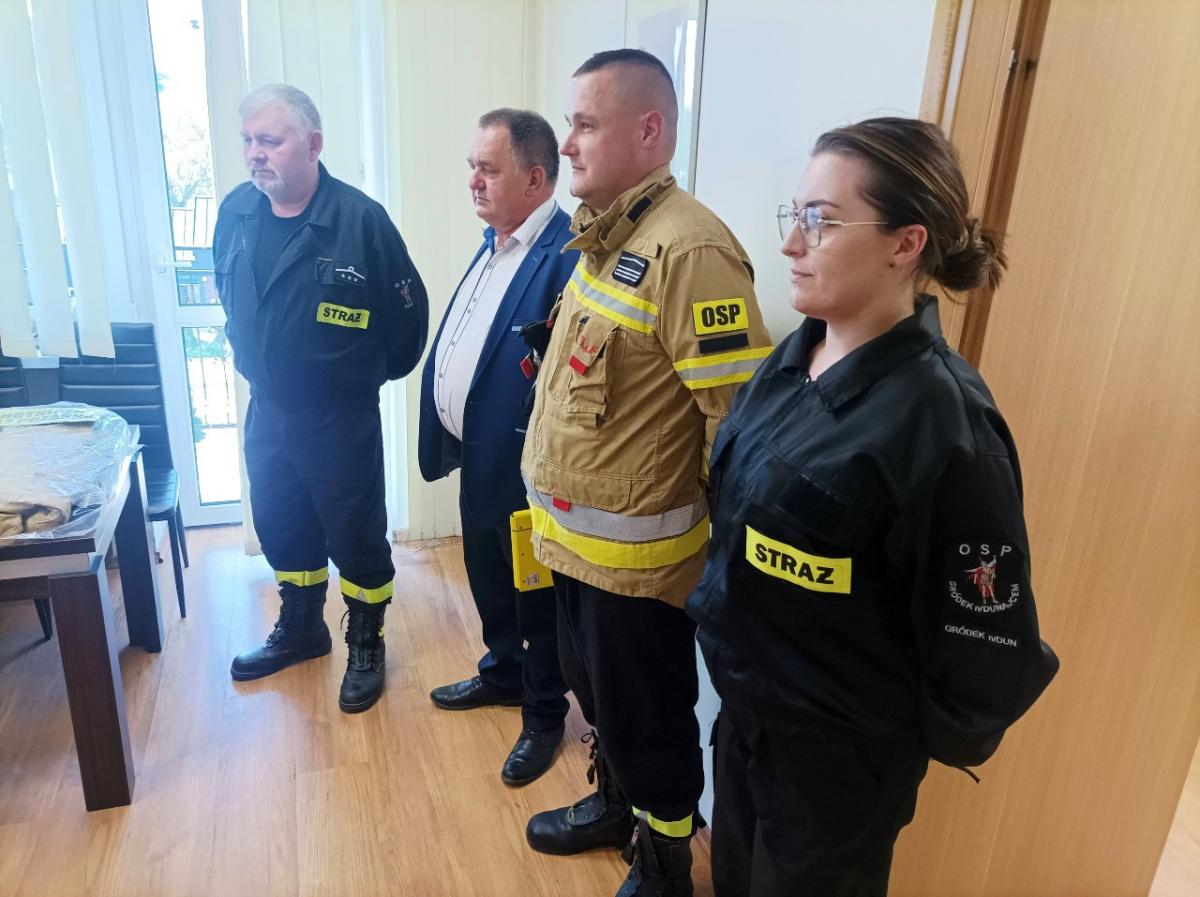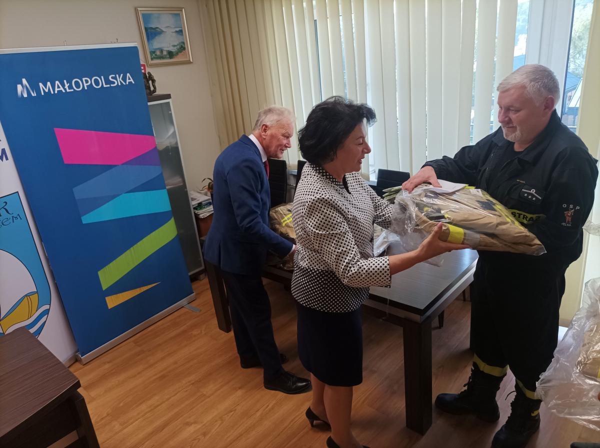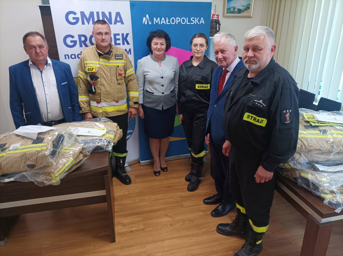 W dniu 26 września 2023 roku, w Urzędzie Gminy Gródek nad Dunajcem OSP nastąpiło uroczyste przekazanie przez Radną Województwa Małopolskiego Jadwigę Wójtowicz i Wójta Gminy Józefa Tobiasza ośmiu kompletów ubrań specjalnych