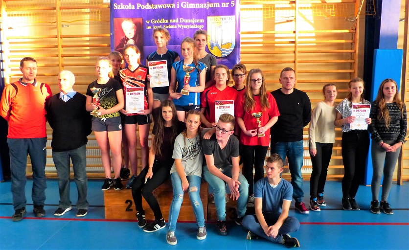 24 listopada br. hala sportowa w Gródku nad Dunajcem gościła 16 drużyn z powiatów: limanowskiego, gorlickiego, nowosądeckiego i miasta Nowy Sącz, które rywalizowały ze sobą w Półfinale Mistrzostwo Małopolski - Gimnazjada Młodzieży Szkolnej w Drużynowym Tenisie Stołowym Dziewcząt i Chłopców. Gimnazjalistki z Gródka nad Dunajcem - Paulina Bielak, Marlena Sromek i Dominika Turek okazały się najlepsze zwyciężając swoje rywalki i zapewniając sobie awans do turnieju finałowego. Drużyna z Przydonicy zdobyła III miejsce. Gratulujemy!